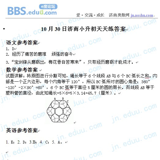 2012.10.30济南小升初天天练模拟题答案