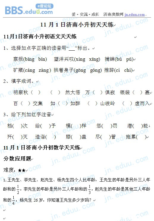 济南小升初天天练栏目每日精选一道题,名师指导讲解,为你升学把脉。