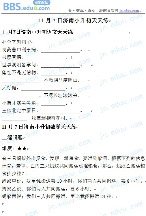 济南小升初天天练栏目每日精选一道题,名师指导讲解,为你升学把脉。