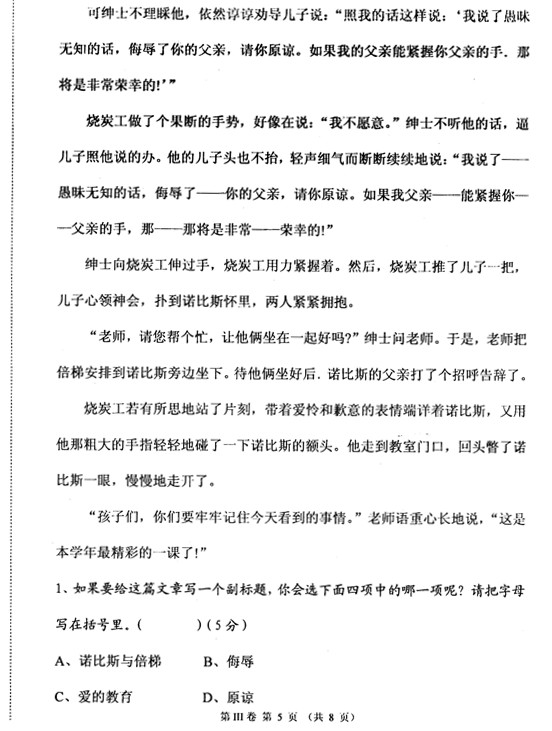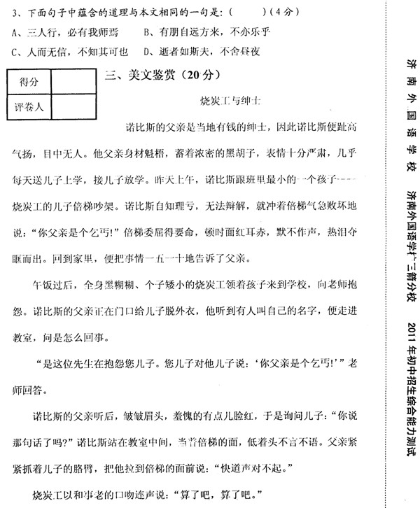 2011年济南外国语小升初招生语文试卷及参考答案(2)