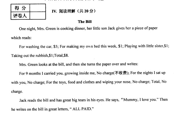 2011年济南外国语小升初英语试卷参考答案