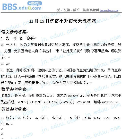 2012年11月15济南小升初天天练模拟题答案