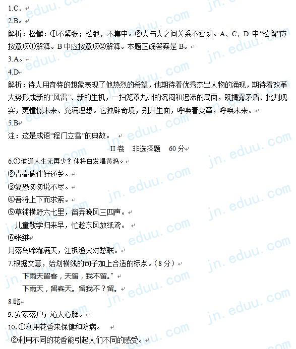 2011年稼轩中学小升初语文招生试卷及答案(6)