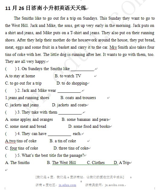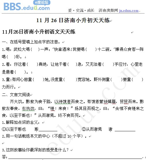 2012年11月26日济南小升初天天练模拟题