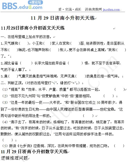 济南小升初天天练栏目每日精选一道题,名师指导讲解,为你升学把脉。