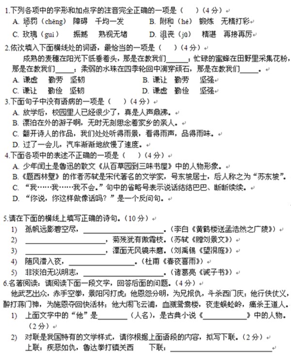 2012年稼轩中学语文招生真题及答案(上午) 济南奥数网整理 2012-12-06 11:49:52 济南奥数网为小升初孩子免费提供稼轩中学(历城二中初中部)往年小升初招生试题。下面是2012年稼轩中学语文招生真题和答案。此套试卷是上午考试的考生所使用的。点击进入论坛讨论试题及下载。 点击查看更多济南小升初真题 2012年稼轩中学语文招生真题(上午) 首页 上一页 下一页 尾页