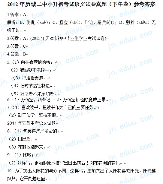 2012年稼轩中学语文招生真题及答案(下午)(2)
