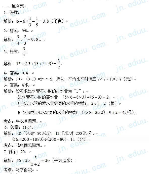 2012年稼轩中学数学招生真题及答案(上午)(2)