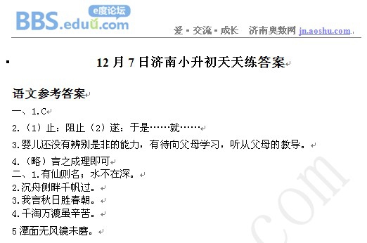2012年12月7日济南小升初天天练模拟题答案