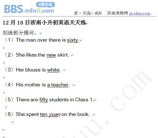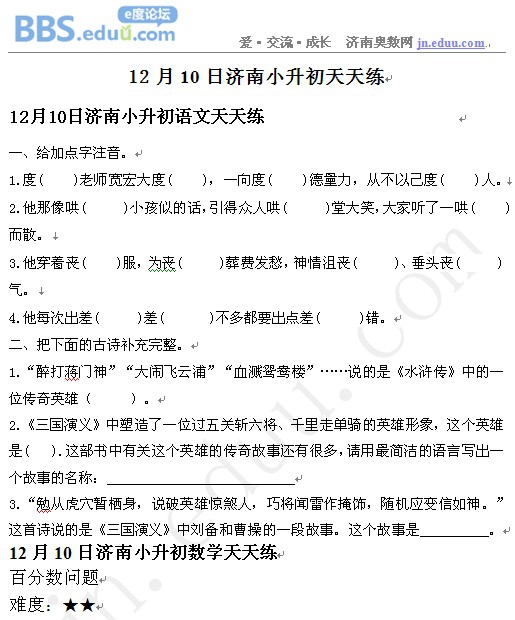 2012年12月10日济南小升初天天练模拟题