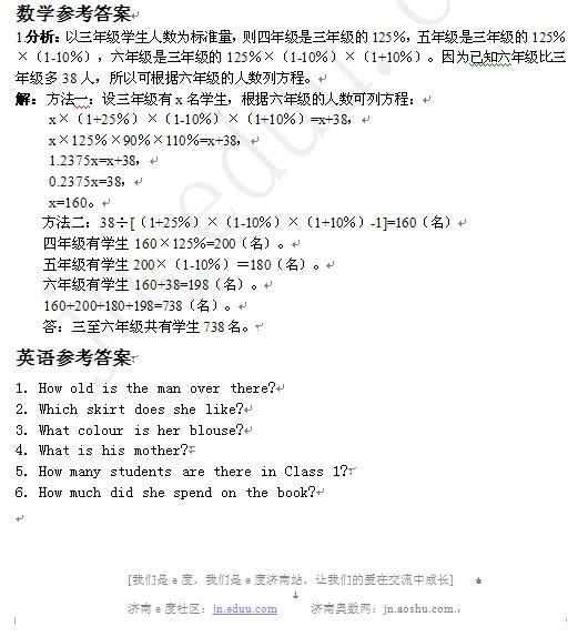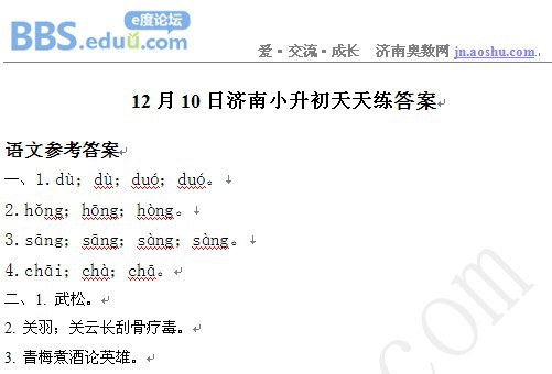 2012年12月10日济南小升初天天练模拟题答案
