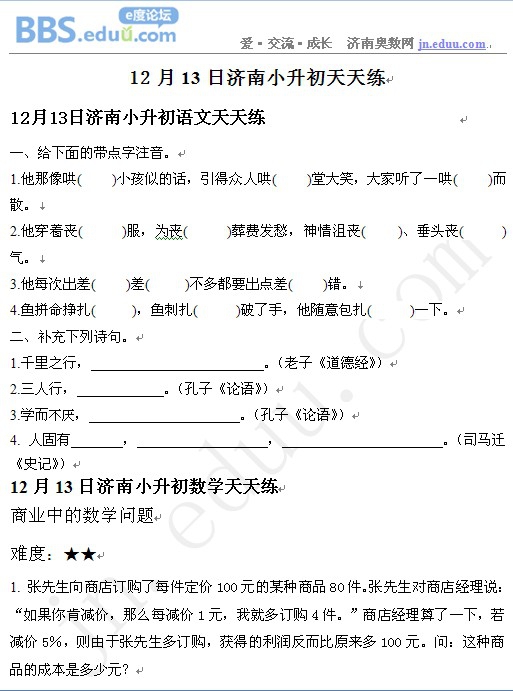 济南小升初天天练栏目每日精选一道题,名师指导讲解,为你升学把脉。