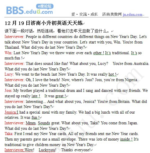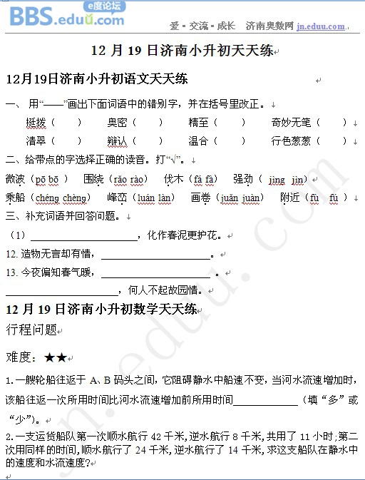2012年12月19日济南小升初天天练模拟题