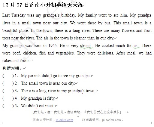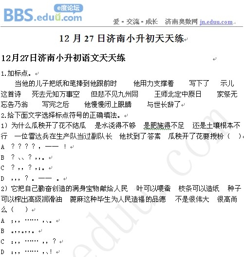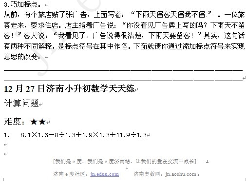 2012年12月27日济南小升初天天练模拟题