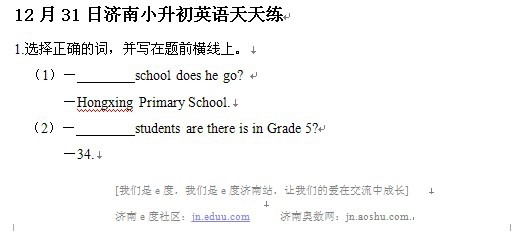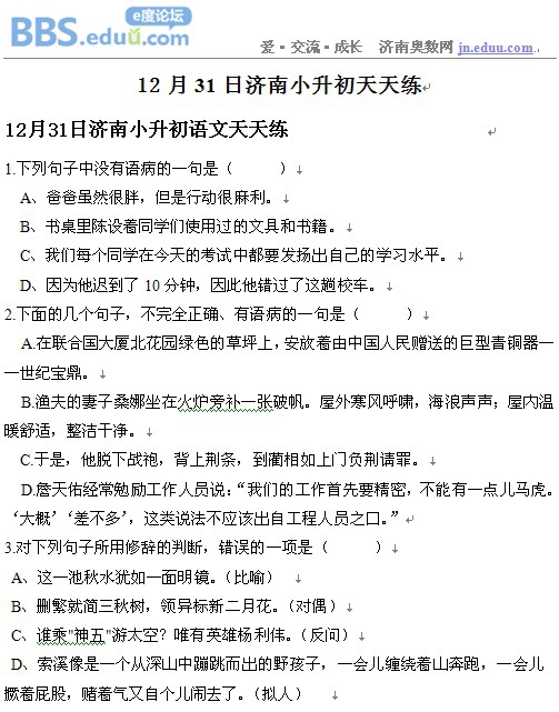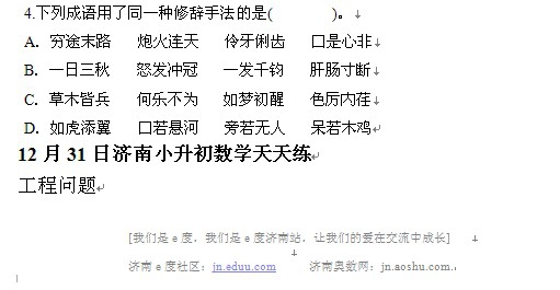 2012年12月31日济南小升初天天练模拟题