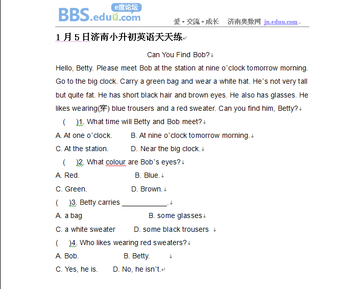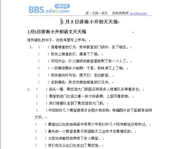 2013年1月5日济南小升初天天练模拟题