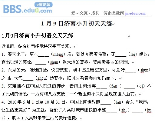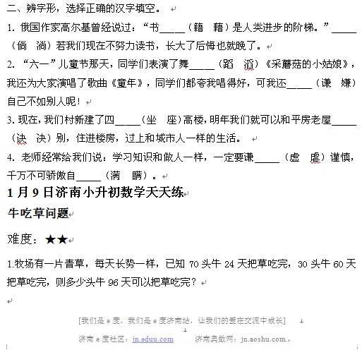 2013年1月9日济南小升初天天练模拟题