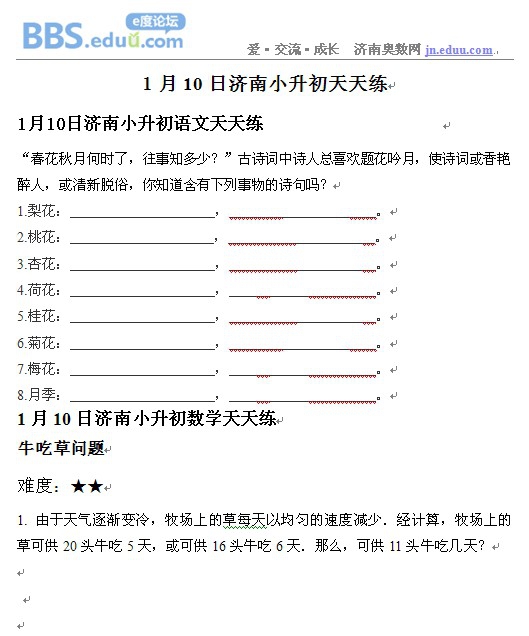 济南小升初天天练栏目每日精选一道题,名师指导讲解,为你升学把脉。