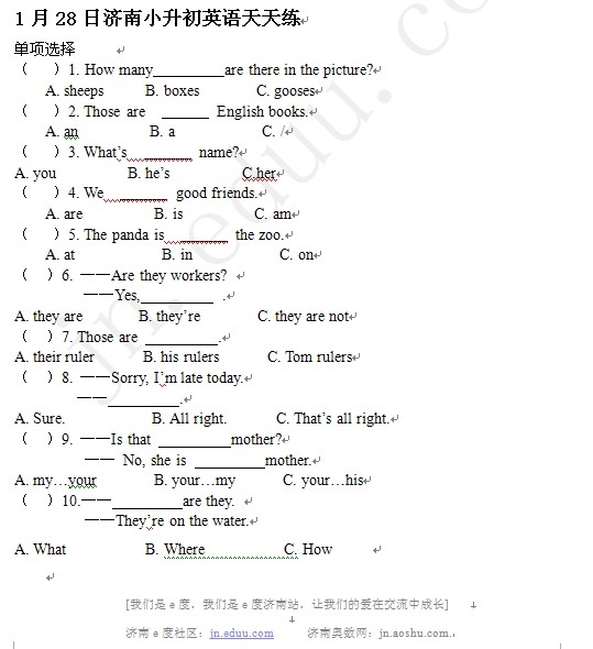 | 2013年1月28日济南小升初模拟题 | 2013年1月28日济南小升初模拟题答案 |