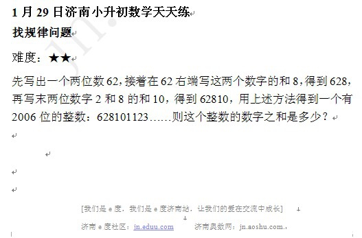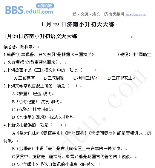 | 2013年1月29日济南小升初模拟题 | 2013年1月29日济南小升初模拟题答案 |