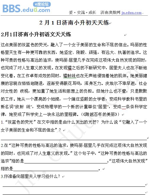 2013年2月1日济南小升初天天练模拟题