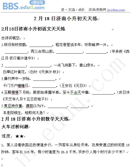 | 2月18日济南小升初天天练模拟题及答案 | |