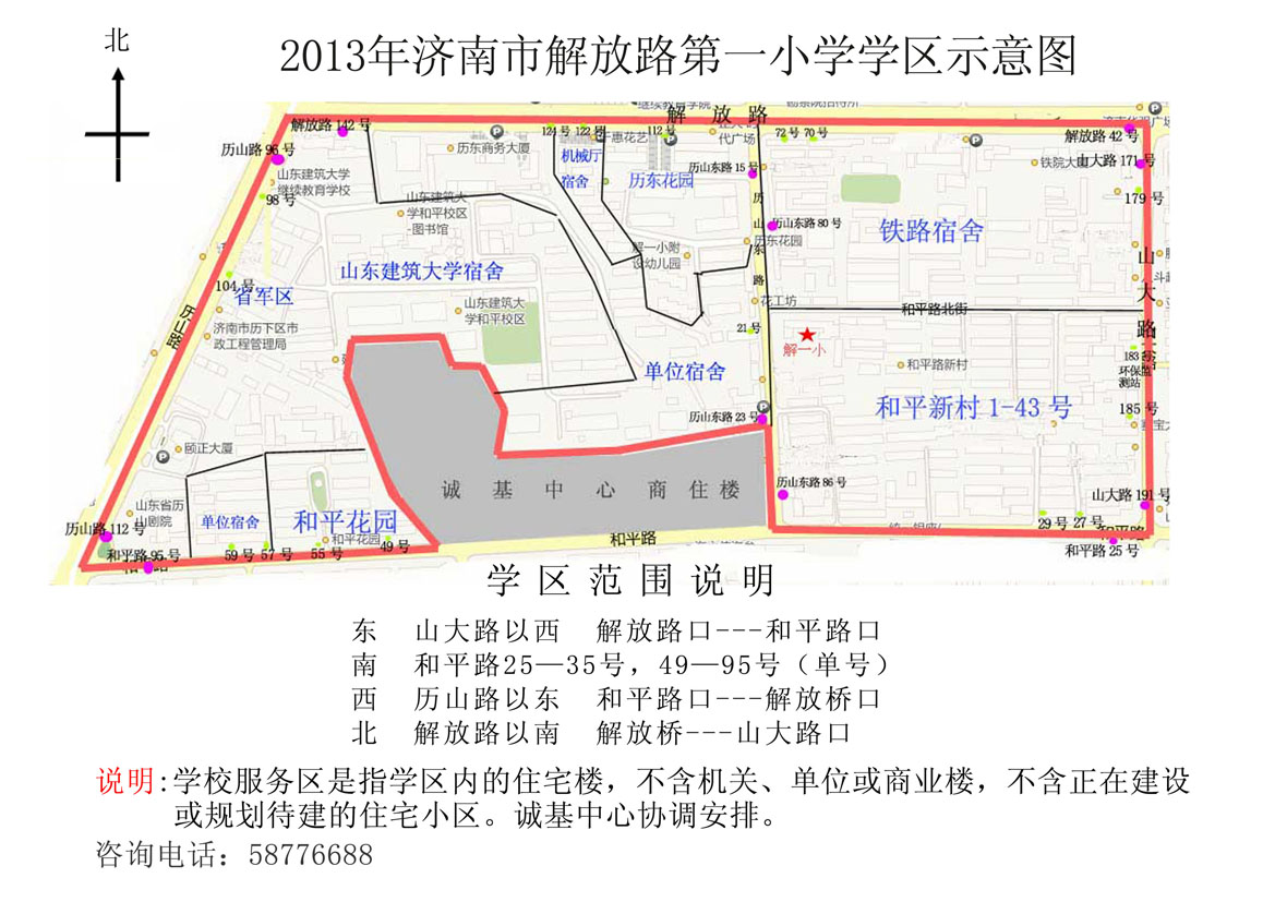 济南历下区解放一小学区房范围是哪些?哪里有历下区解放路第一小学学区房示意图展示。