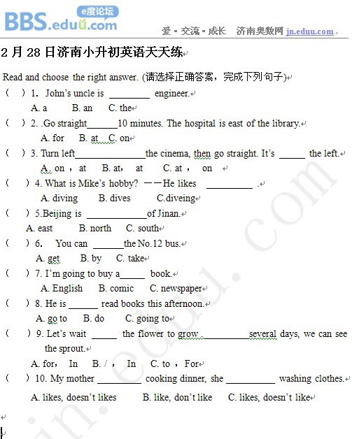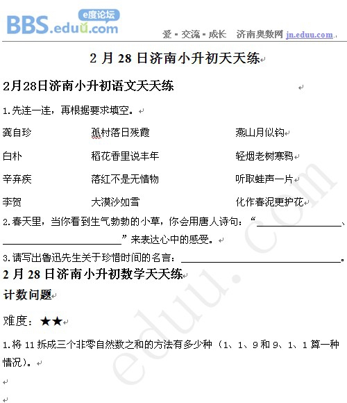 2013年2月28日济南小升初天天练模拟题
