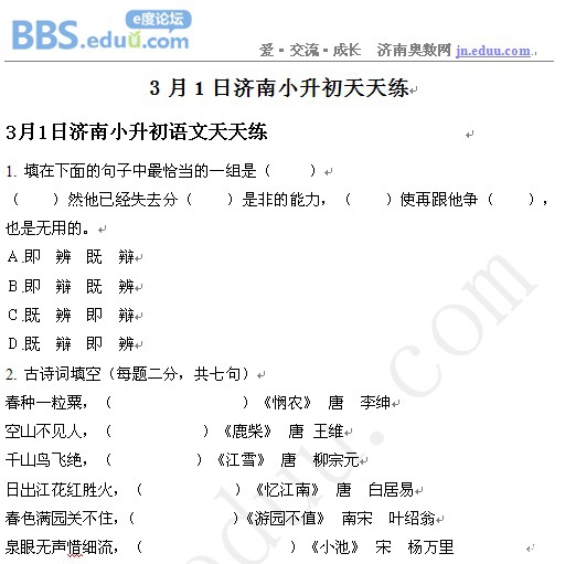 2013年3月1日济南小升初天天练模拟题及答案