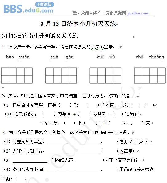 济南小升初天天练栏目每日精选一道题,名师指导讲解,为你升学把脉。