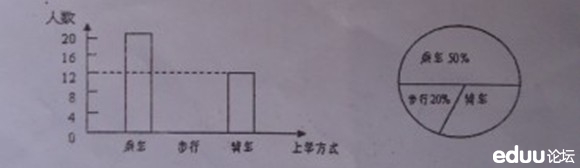 1.(10分)小刚就本班同学的上学方式进行了一次调查统计,左图和右图是他通过采集数据后,绘制的两幅不完整的统计图,请你根据图中提供的信息,解答以下问题: