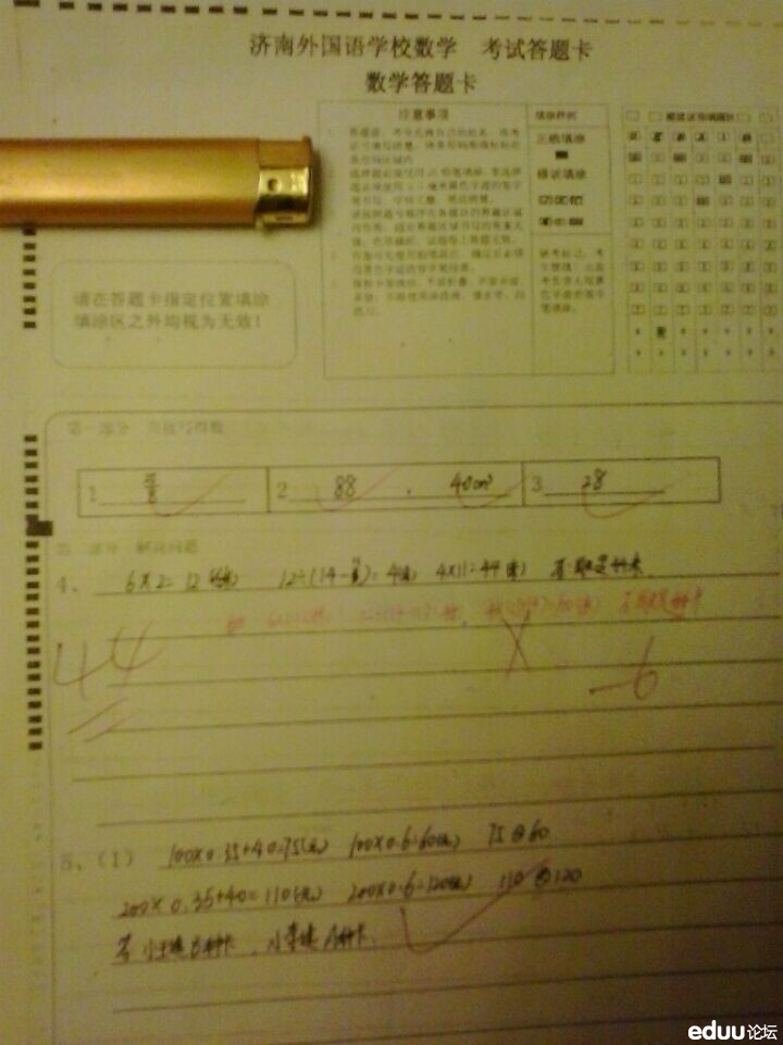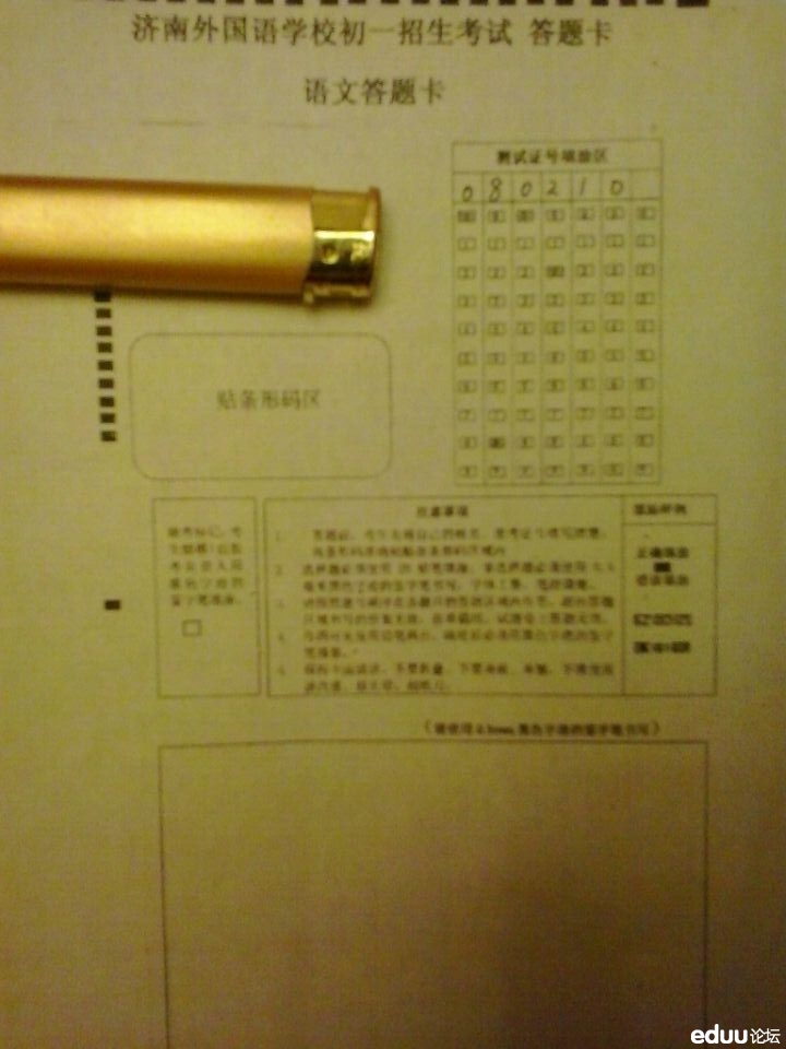 【查看原帖并参与讨论:济南外国语去年小升初考试答题卡的样式】