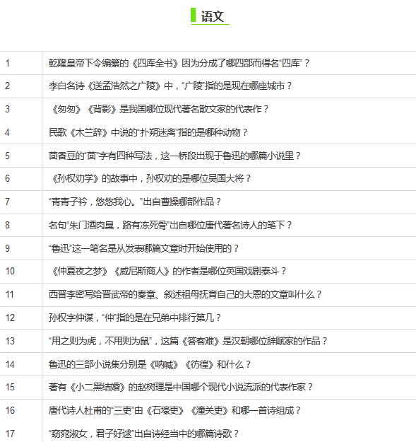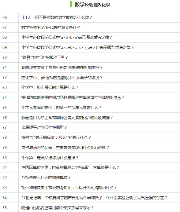 216济南小升初备考,济南家长帮和奥数网小编已经和大家一起积累了很多百科知识【点击查看百科知识天天练】,下面是100到中学生常识题,即将2016济南小升初的你能作对多少道呢?(题目转自中国新闻周刊)