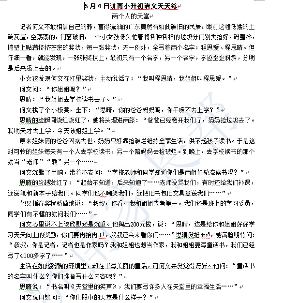 2016济南小升初择校备考开始啦,济南学而思的老师们为了帮助2016济南小升初的孩子们走就自己心仪的学校,每周一至周五更新一练2016小升初语文摸底测试题,并在第二天更新答案,下面就开始5月4日第九十二天的摸底测试吧。