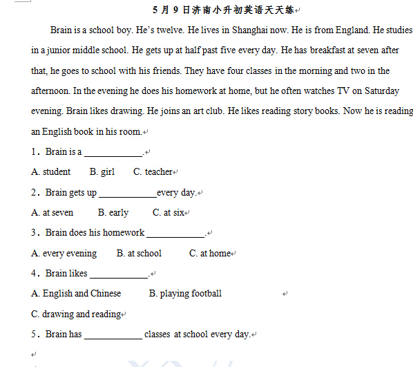 2016济南小升初择校备考开始啦,济南学而思的老师们为了帮助2016济南小升初的孩子们走就自己心仪的学校,每周一至周五更新一练2016小升初英语摸底测试题,并在第二天更新答案,下面就开始5月9日第九十五天的摸底测试吧。