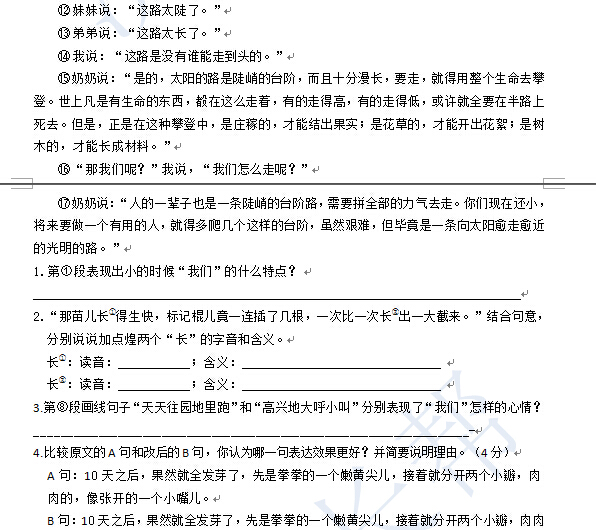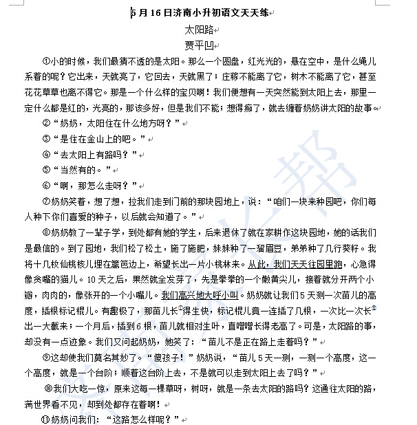 2016济南小升初语文摸底测试第100练(5.16)