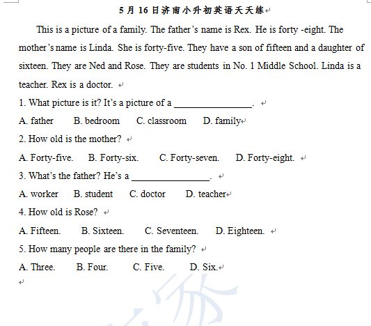 2016济南小升初英语摸底测试第100练(5.16)