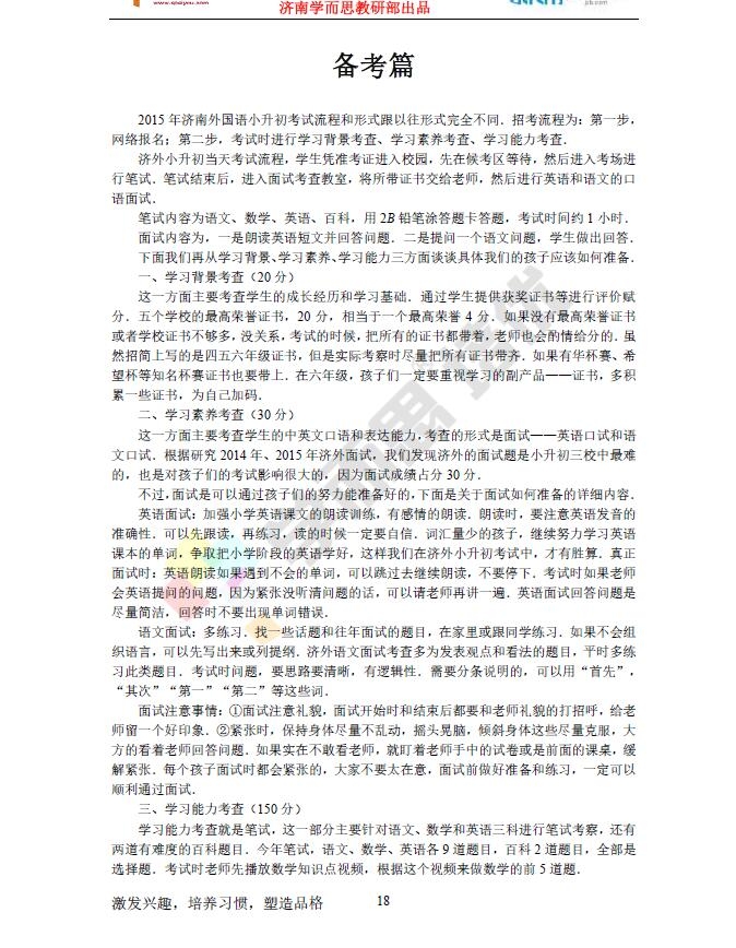 还有一个半月左右的时间将迎来2016济南小升初招生考试,关于2016济南小升初考试前大家对于招生考试学校还有很多细节的问题想了解,下文整理了济南外国语学校小升初备考方法及经验,供2016济南小升初择校家长参考。
