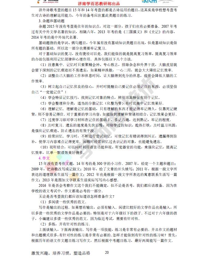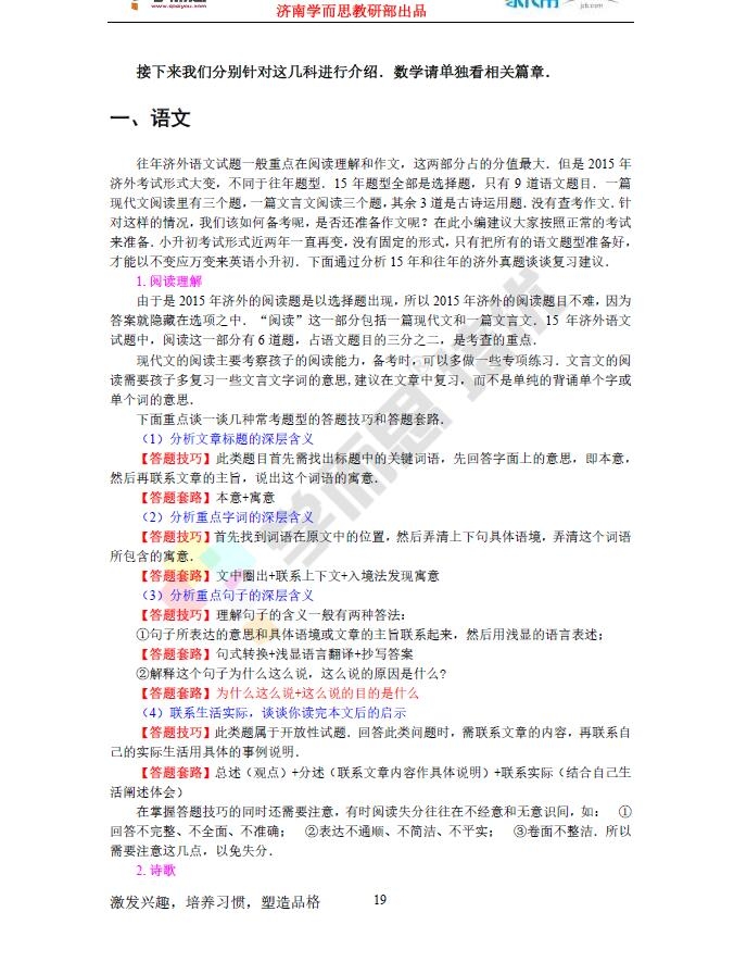 济南外国语学校2016小升初语数英备考方法