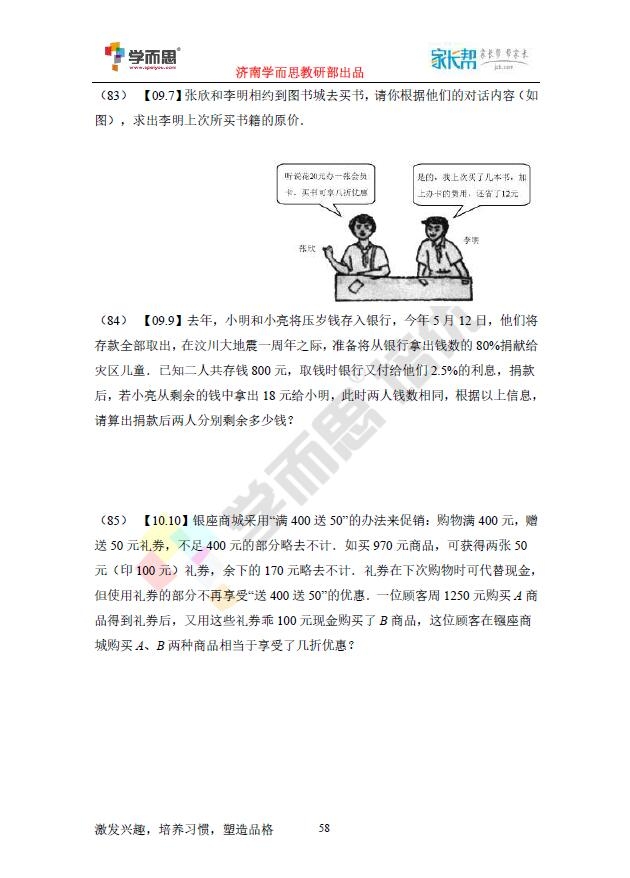 济南外国语2016小升初考试数学应用题模块分析(2)