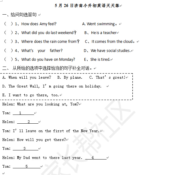 2016济南小升初英语摸底测试第108练(5.26)