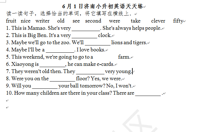 2016济南小升初择校备考开始啦,济南学而思的老师们为了帮助2016济南小升初的孩子们走就自己心仪的学校,每周一至周五更新一练2016小升初英语摸底测试题,并在第二天更新答案,下面就开始6月1日第一百一十二天的摸底测试吧。