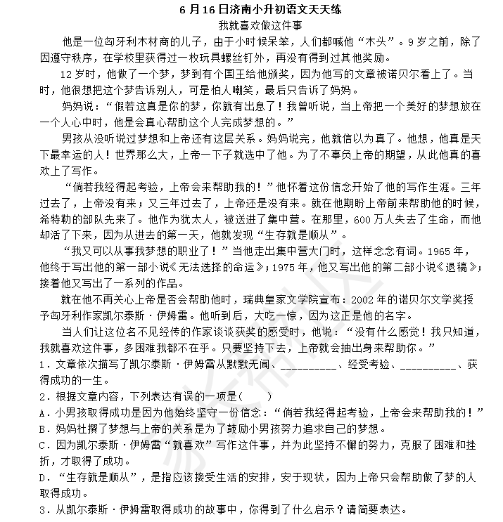 2016济南小升初语文摸底测试第120练(6.16)