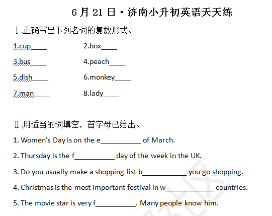 2016济南小升初英语摸底测试第123练(6.21)