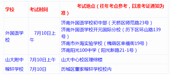 2016年济南三校考试时间都确定啦,外国语、山大附中、稼轩学校三所都是7月10日(周日)进行考试,关于三个学校目前确定的消息呢?