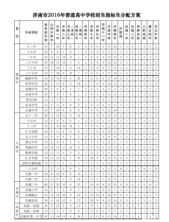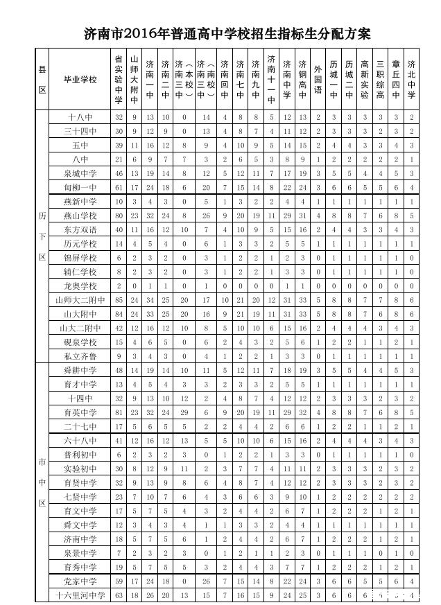 2016年济南指标生分配名额