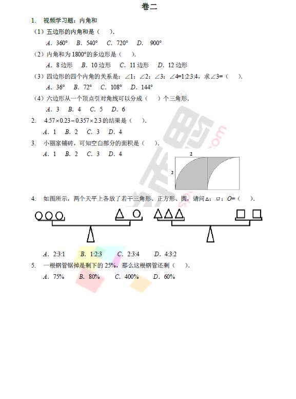 2015年济南外国语小升初考试数学真题(2)