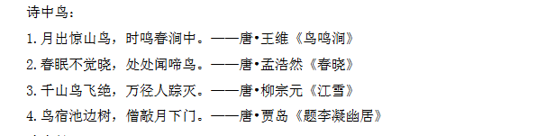 2017年济南小升初诗歌练习:诗中鸟