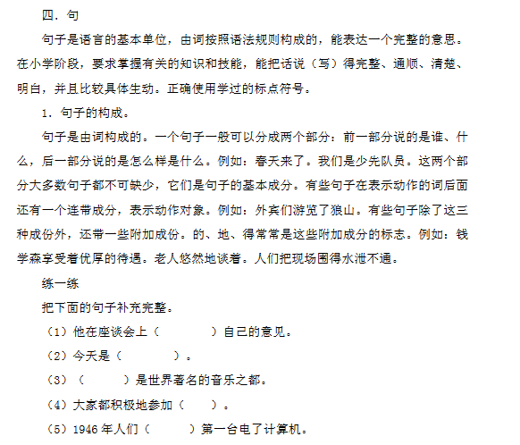 2017年济南小升初语文知识总复习:复习四