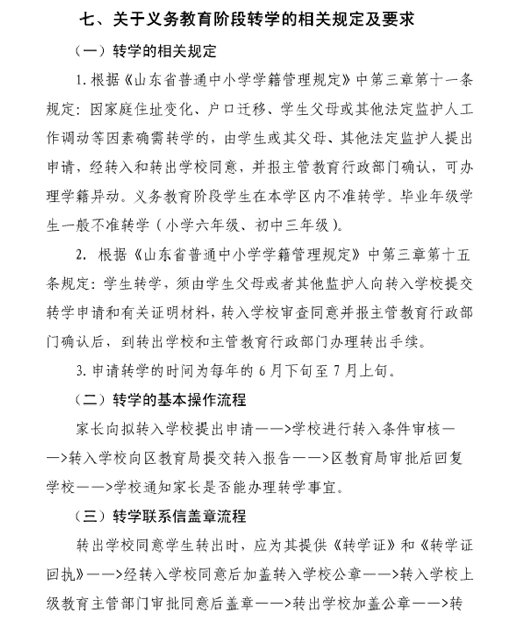 2017年济南义务教育阶段转学的相关规定和要求 济南家长帮 2017-05-19 11:38:21 2017年济南义务教育阶段转学的相关规定和要求 编辑推荐: 2017年济南小学对口直升初中一览表 济南教育局召开2017济南中小学招生工作说明会 2017济南教育局依然不出台义务教育新招生工作意见 首页 上一页 下一页 尾页